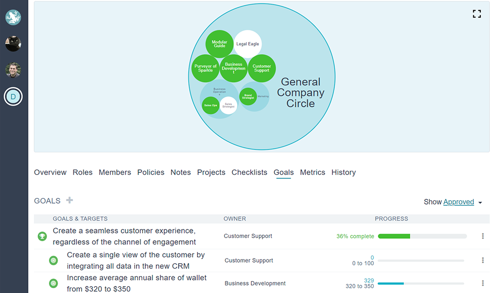 Позвольте вашей команде достигать организационных целей, поддерживая OKR, KPI и другие системы целеполагания прямо в GlassFrog.